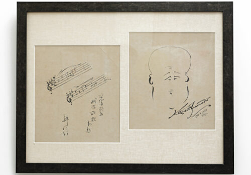 山田耕筰自筆色紙額「交響詩曲 明治頌歌」「自画像」、北原白秋直筆色紙額「山田耕筰像」 2025年 12月 12日