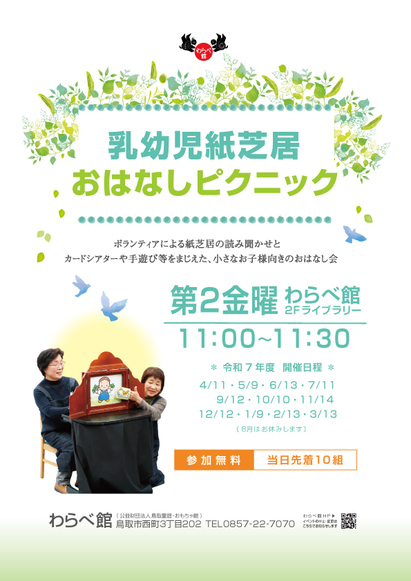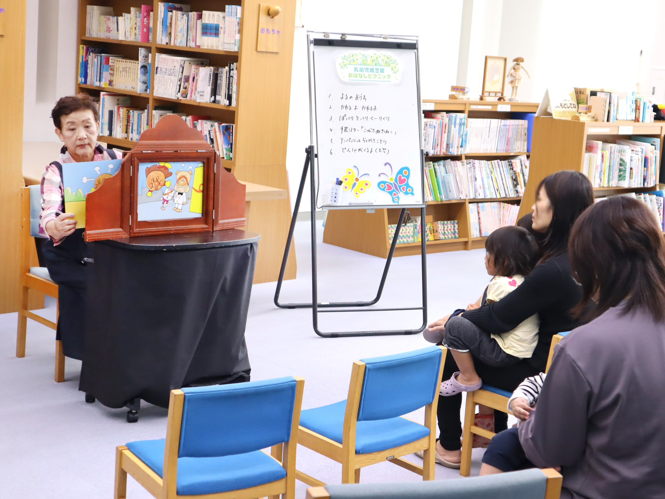ボランティアによる紙芝居の読み聞かせと、手遊び等をまじえた小さなお子様向きのおはなし会。