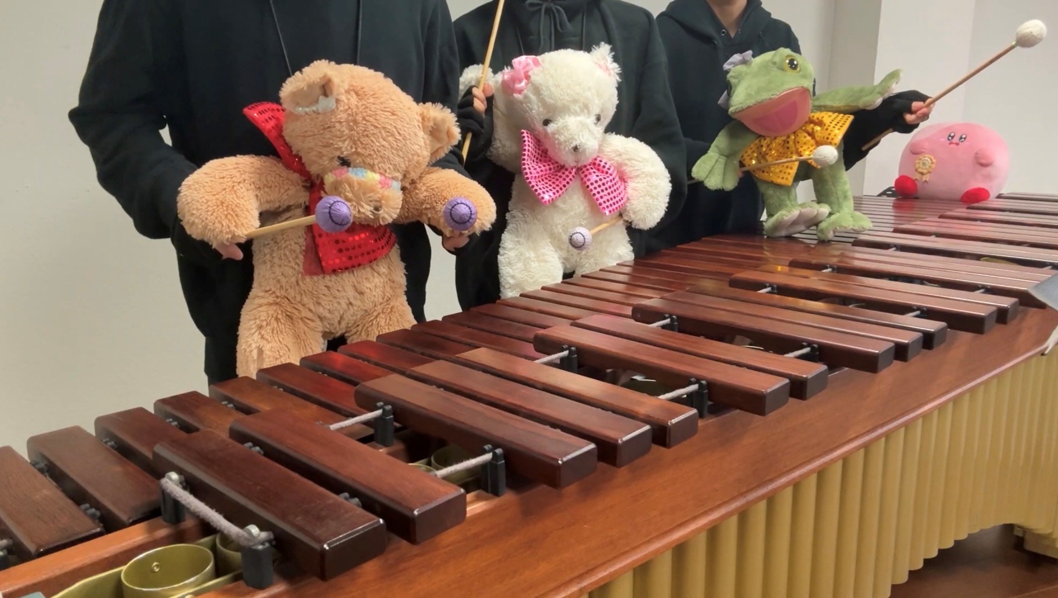 可愛い3匹のぬいぐるみさんたちが、大きな木琴を演奏!