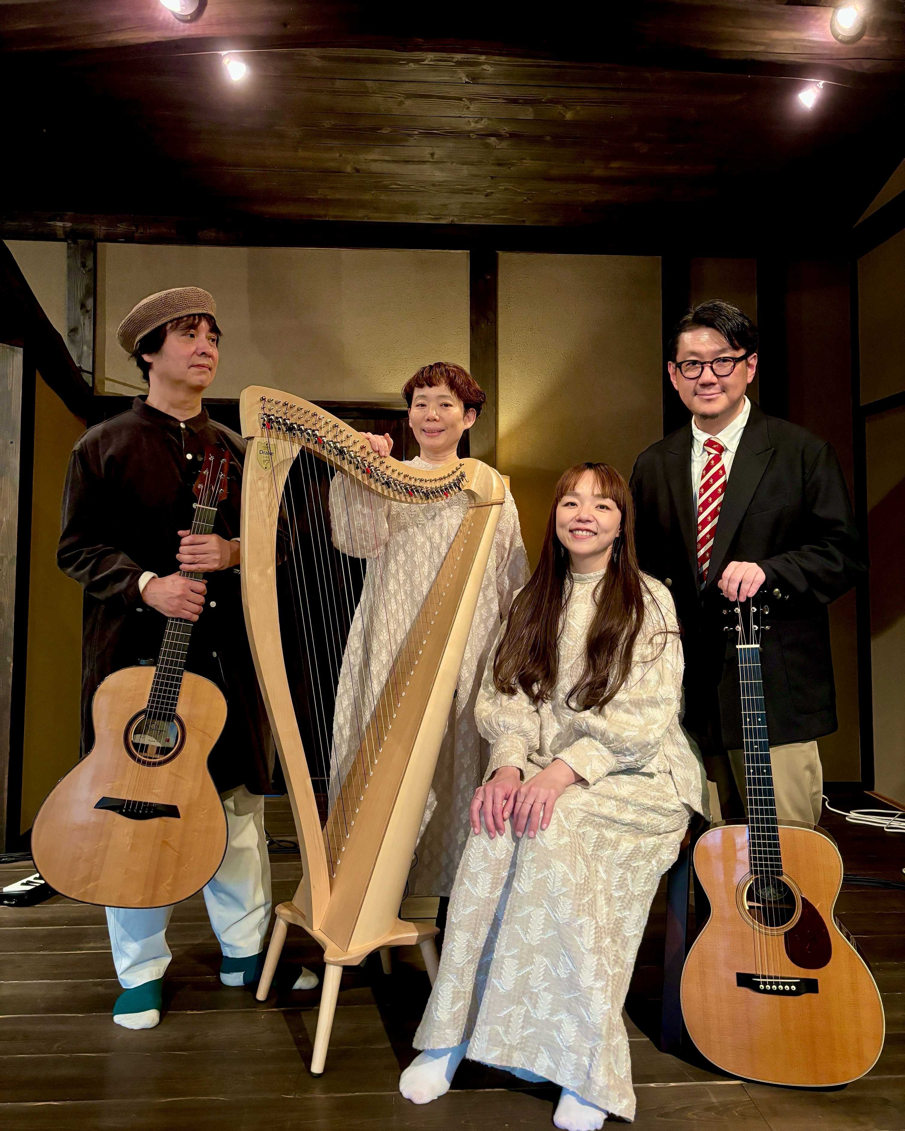 歌と2本のギター、ハープのやすらぎアンサンブル。