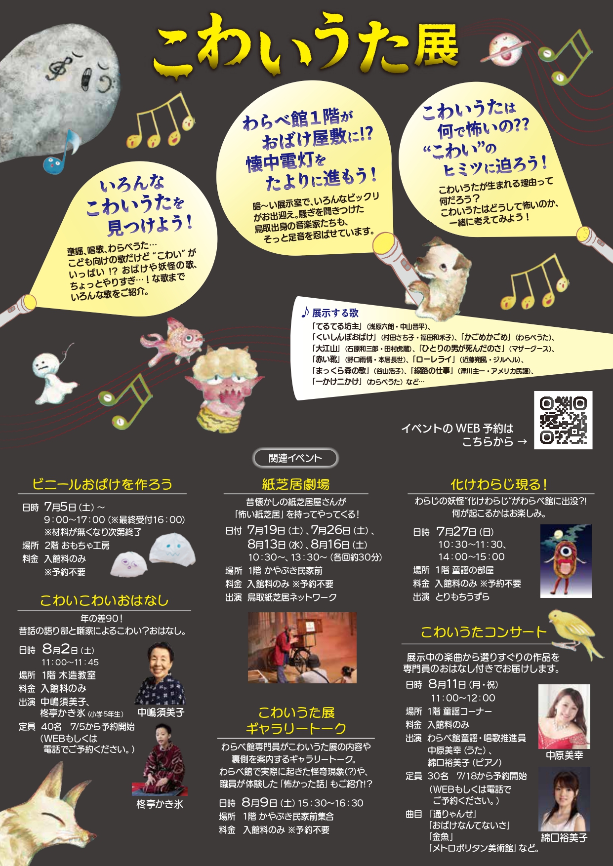 わらべ館職員がこわいうた展の内容や裏側を案内するギャラリートーク。わらべ館で実際に起きた怪奇現象(?)や、職員が体験した「怖かった話」もご紹介!?