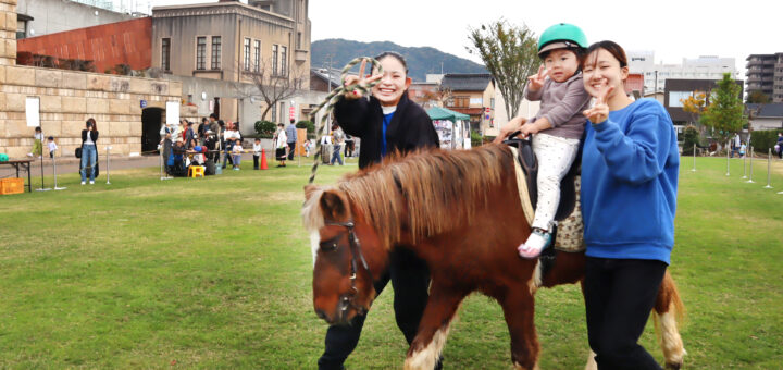 来年はうま年!お手持ちのカメラで、ポニーと年賀状写真をウマ~く撮ろう。ブラッシングや引馬乗馬の体験もできるよ。