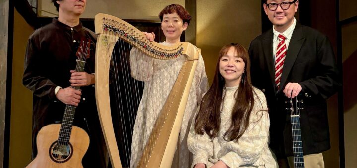 歌と2本のギター、ハープのやすらぎアンサンブル。